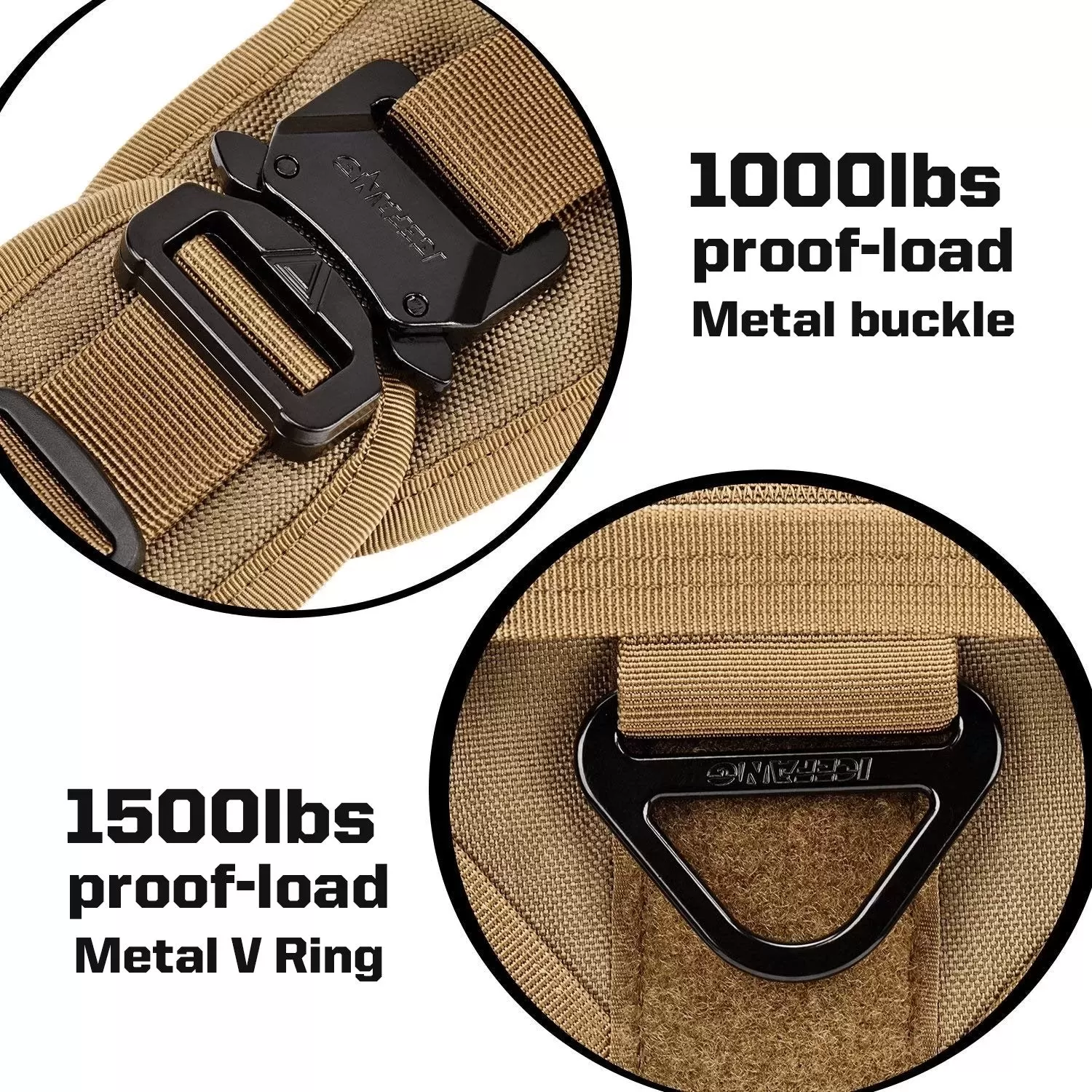 • Military Standard Material: Heavy-duty vest made of 1000D nylon with sturdy stitching for extra durability and wearability, making this harness suitable for all field use. It includes two metal shoulder buckles that can bear great pulling force and ensure your dog is safely harnessed during training, hunting, working, and any other occasions. It’s also well-padded in every pressure load point to protect your dog’s skin, while the breathable air mesh keeps your dog ventilated and comfortable.