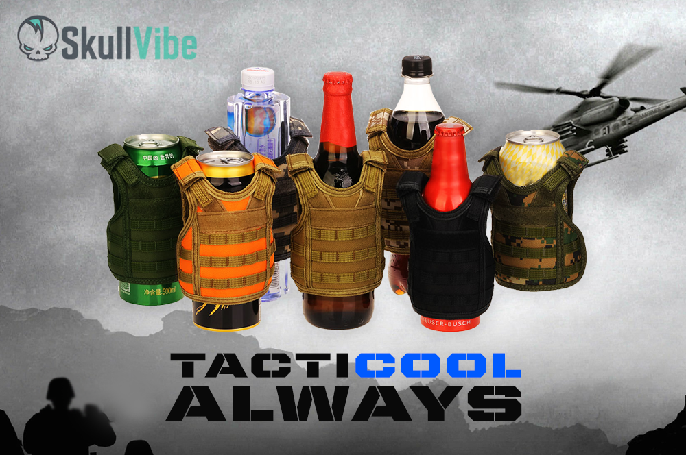 TACTICAL DESIGN: This beverage cooler design is inspired by a military molle tactical vest. This unique design will have your can or bottle looking great and ready to charge, literally!